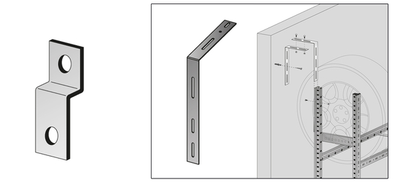 2 Pfosten, 1 Diagonale zum Stabilisieren, 2 Kunststofffüße und 2 Kunststoffkappen, Wandbefestigung, Schrauben und Dübel. Ausführung verzinkt.